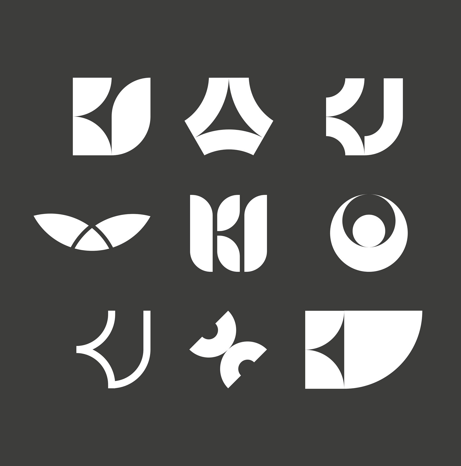 LUXURY EYEWEAR START-UP 'KATIA JOY', Required a logo that encompassed three generations of family names that are included in it's title. logo iterations looked at a combination of the brands initials and three graphic elements.